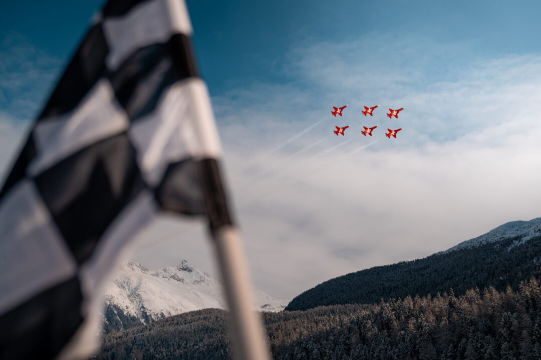 Beyond the concours itself, the entire town of St. Moritz embraced the occasion with exhibitions, gatherings and lifestyle moments spread between the lake and the city centre, blending automotive culture with art, design and Alpine glamour. A spectacular highlight was the performance of the Patrouille Suisse, the Swiss Air Force’s official aerobatic team, whose precision flight over the frozen lake and Engadin mountains added a dramatic finale to the weekend.